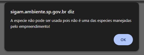 A espécie não pode ser usada pois não é uma das espécies manejadas pelo empreendimento!