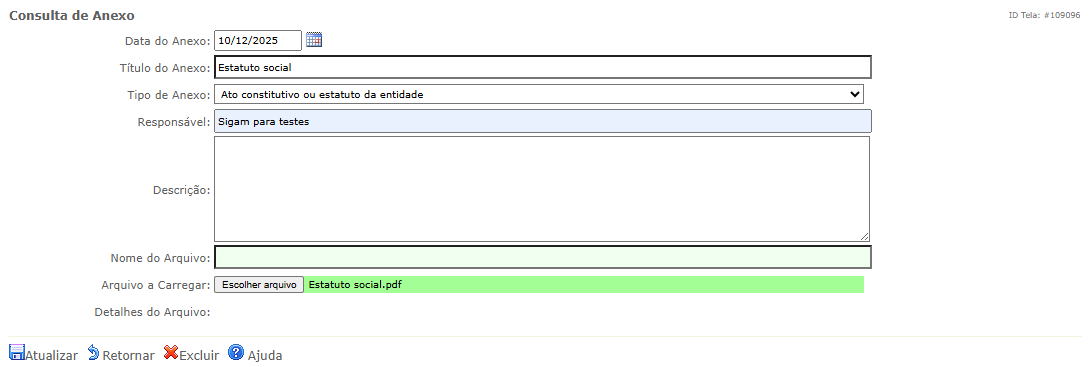 Inclusão e exclusão de anexos