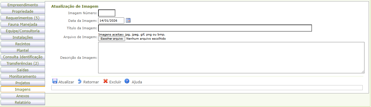 na aba Imagens, para iniciar a inclusão.