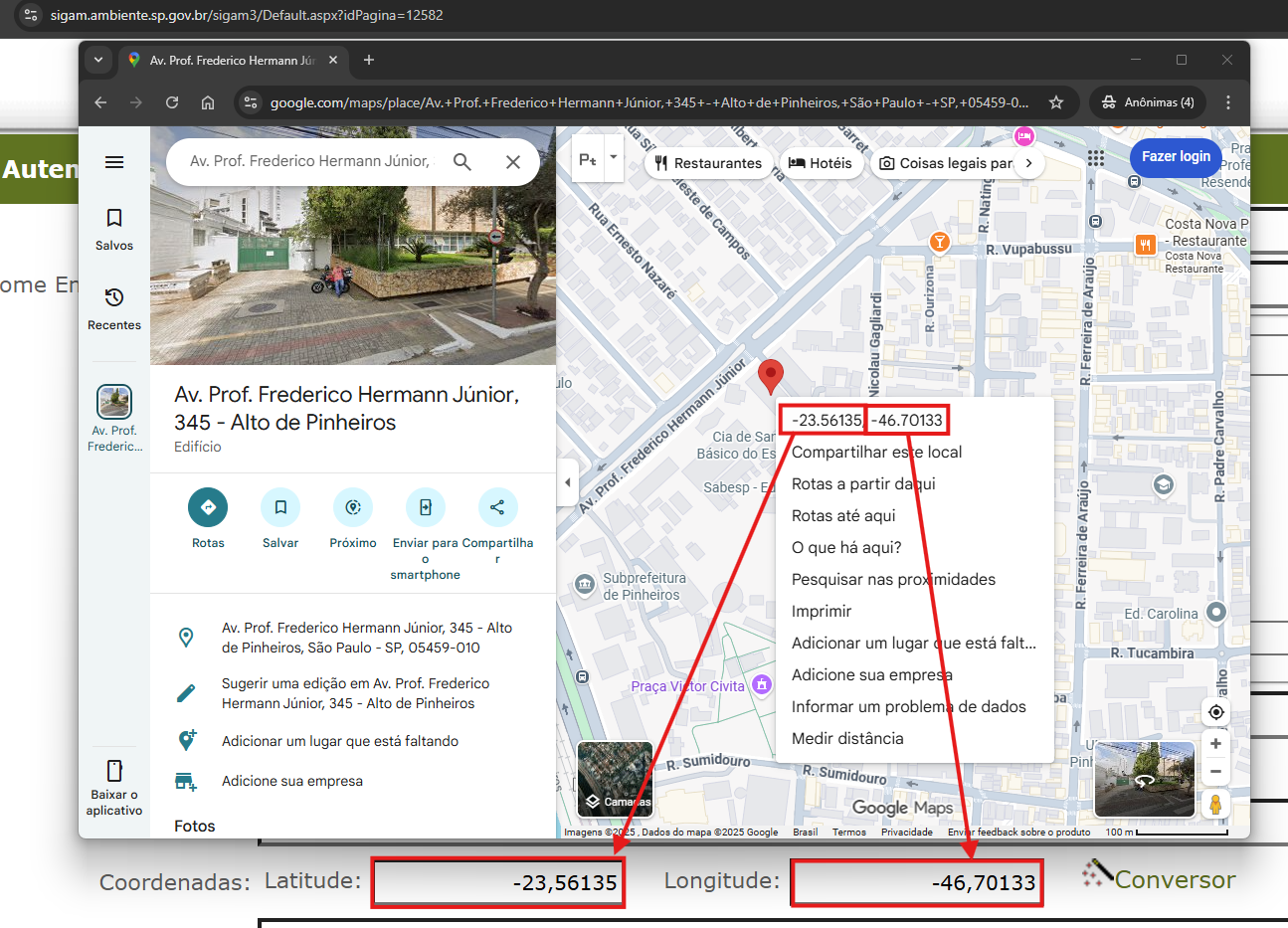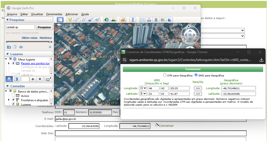 Uso do conversor para preenchimento das coordenadas