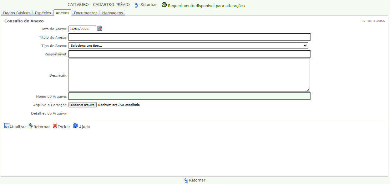 Acesse a aba Anexo e cadastre os anexos necessários. |
