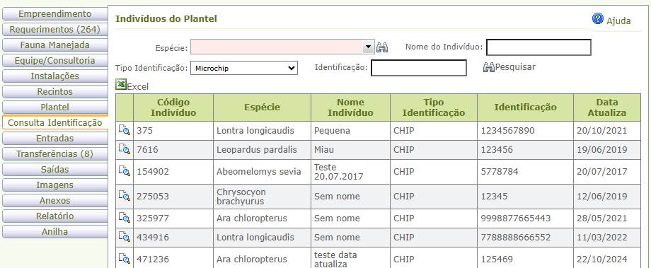 - Busque um indivíduo do plantel a partir do número (completo ou parcial) de um dispositivo de identificação (campo identificação)
