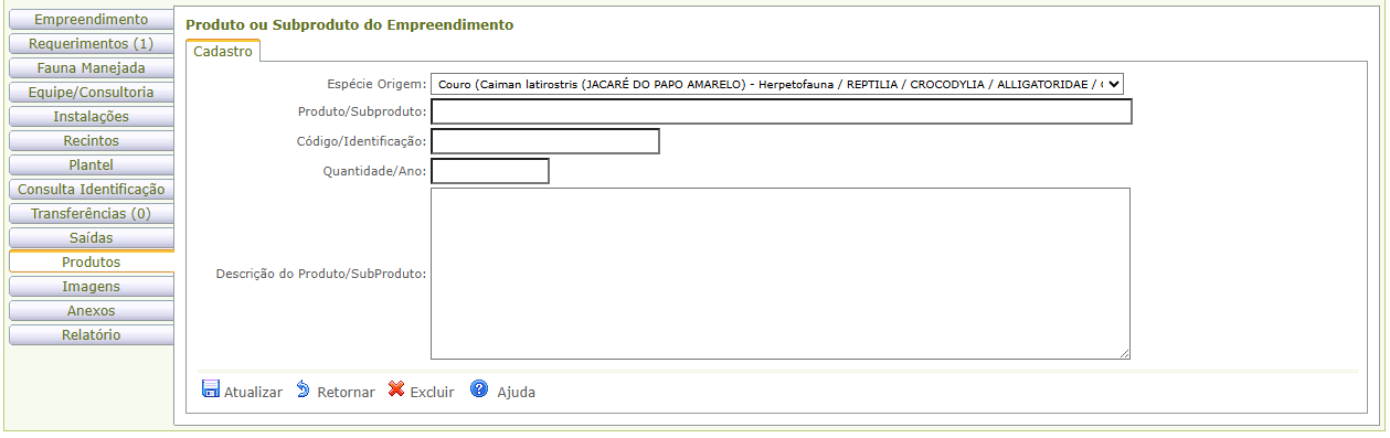 Caso seja necessário utilizar esta aba, recomendamos que seja feita apenas com orientação específica do órgão ambiental.
