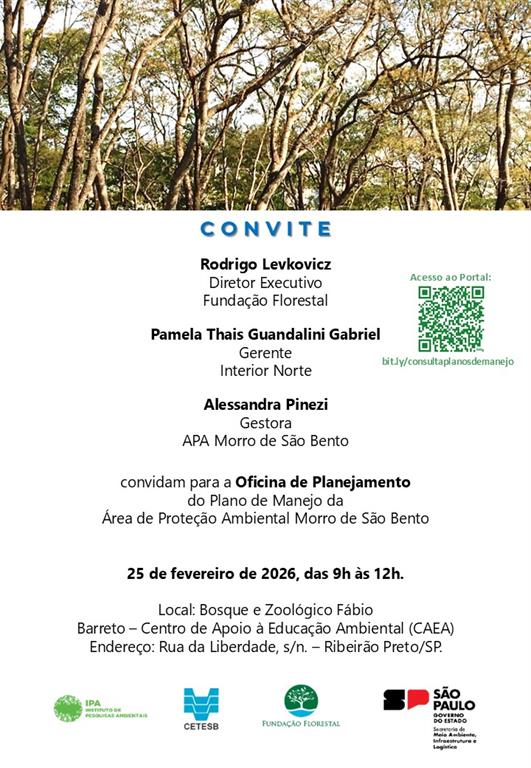 Para enviar contribuições ao Plano de Manejo via formulário eletrônico, vá na Etapa desejada (disponibilizado à medida que cada Oficina ocorra) :