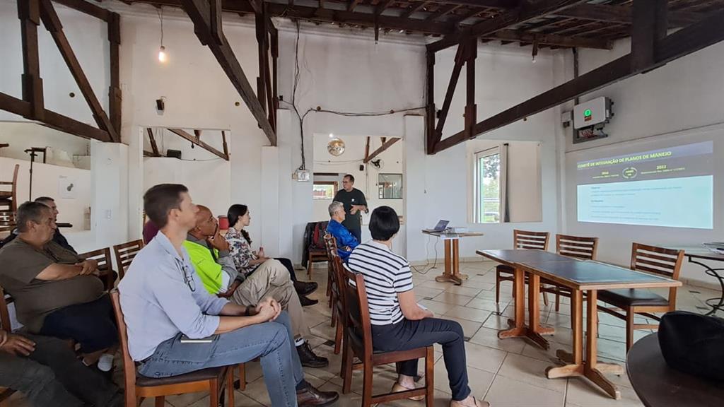 Durante toda a oficina a participação dos presentes foi intensa, merecendo destaques como a intenção de representantes de Entidade Conselheira em integrar planejamento próprio em restauração de ecossistemas á elaboração do plano de manejo no PE de ARA, o interesse e a possibilidade de integração do planejamento das duas unidades com outros instrumentos de planejamento incidentes sobre o município, o histórico de mobilização da sociedade civil quanto ao combate a incêndios nas duas unidades integrado a este planejamento, e o processo da Prefeitura Municipal de Valinhos quanto à criação de nova unidade de conservação no território. Importante ressaltar o excelente local e ótimo apoio para a realização da oficina. Após a dinâmica, foi informado que todo o material produzido estará disponível no Portal de Planos de Manejo da Fundação Florestal, além de distribuído para os membros dos dois Conselhos Consultivos. Foi dito que, no mesmo Portal, a partir do final da oficina, estariam disponíveis os formulários para constribuições adicionais até 16 de setembro de 2026. Também foi dado destaque que os trabalhos já iniciaram, antes mesmo da oficina, a exemplo da presença em campo da Equipe de Vegetação do IPA (Instituto de Pesquisas Ambientais) e dos trabalhos em gabinete pelos demais técnicos e pesquisadores do Sistema Ambiental Paulista. Dessa forma, foi confirmada a próxima oficina junto aos Conselhos Consultivos, sobre propostas de Caracterização e Zoneamento das duas unidades, prevista para um dia inteiro em junho de 2026. Por fim, uma foto registrou os presentes. Sem mais nada a tratar, a reunião foi encerrada. |